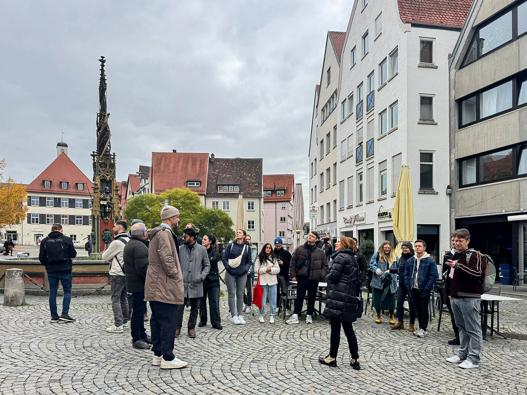 Nach unserer Anreise mit der Bahn bildete den Auftakt eine Stadtführung, die uns quer durch das historische und moderne Stadtbild führte. Startpunkt: das imposante Ulmer Münster, das nicht nur mit seiner Höhe, sondern auch mit architektonischer Ausdruckskraft beeindruckte. Von dort aus ging es weiter durch die Altstadt, vorbei an malerischen Gassen, zeitgenössischer Architektur und reichlich Stadtgeschichte. Natürlich durfte auch Ulms gefiederte Berühmtheit nicht fehlen: der Ulmer Spatz, Sinnbild für Pragmatismus und Legende zugleich. Seine Geschichte über zu lange Baumstämme und kluge Vögel wurde mit einem Augenzwinkern erzählt – und passt irgendwie gut zu unserer Branche.