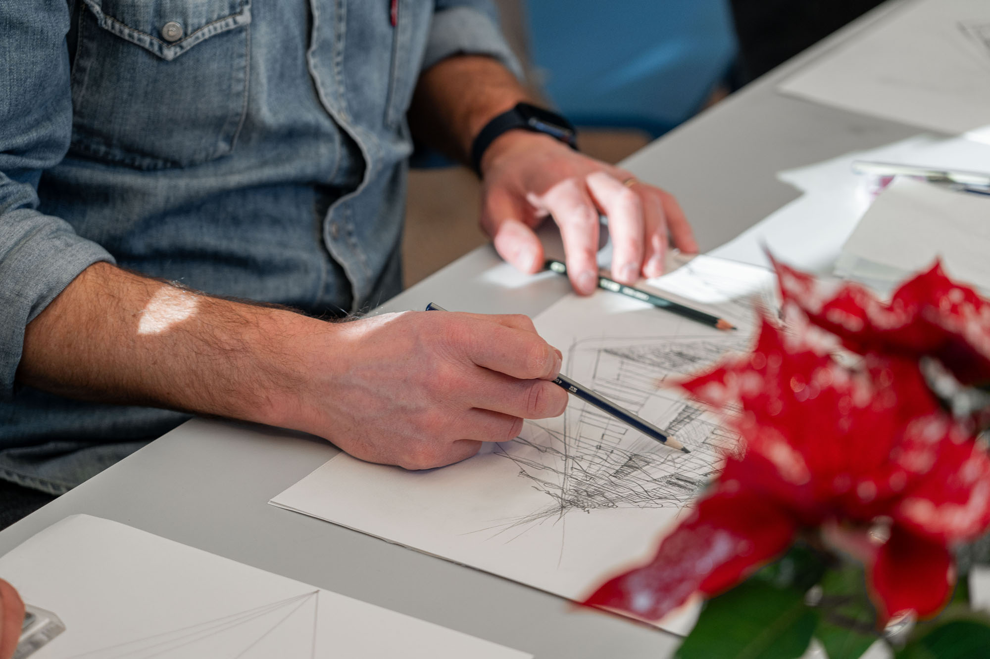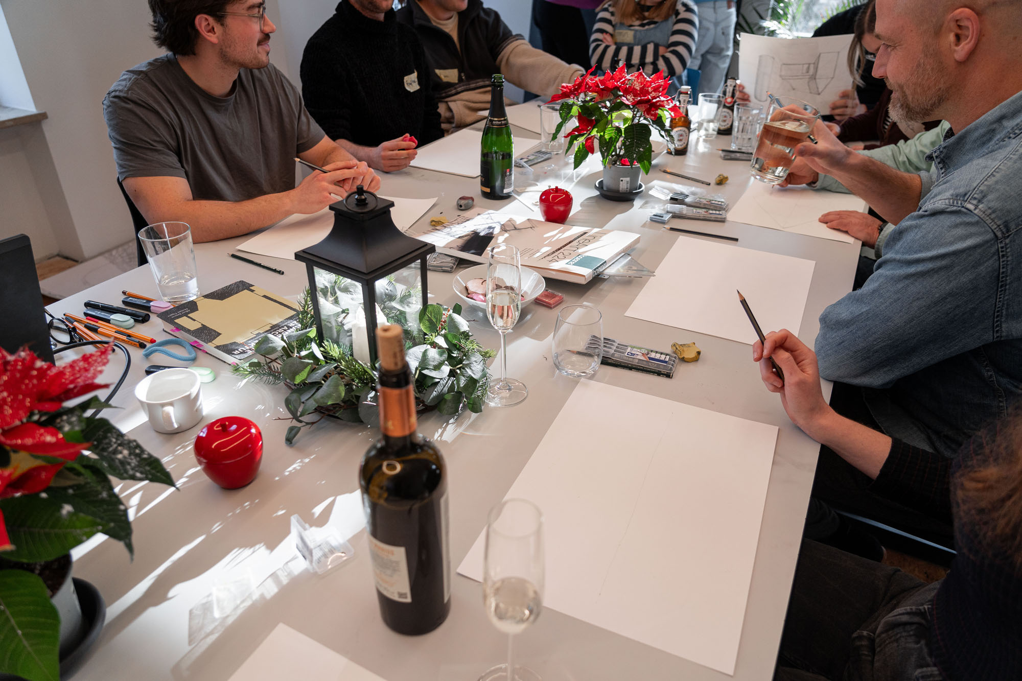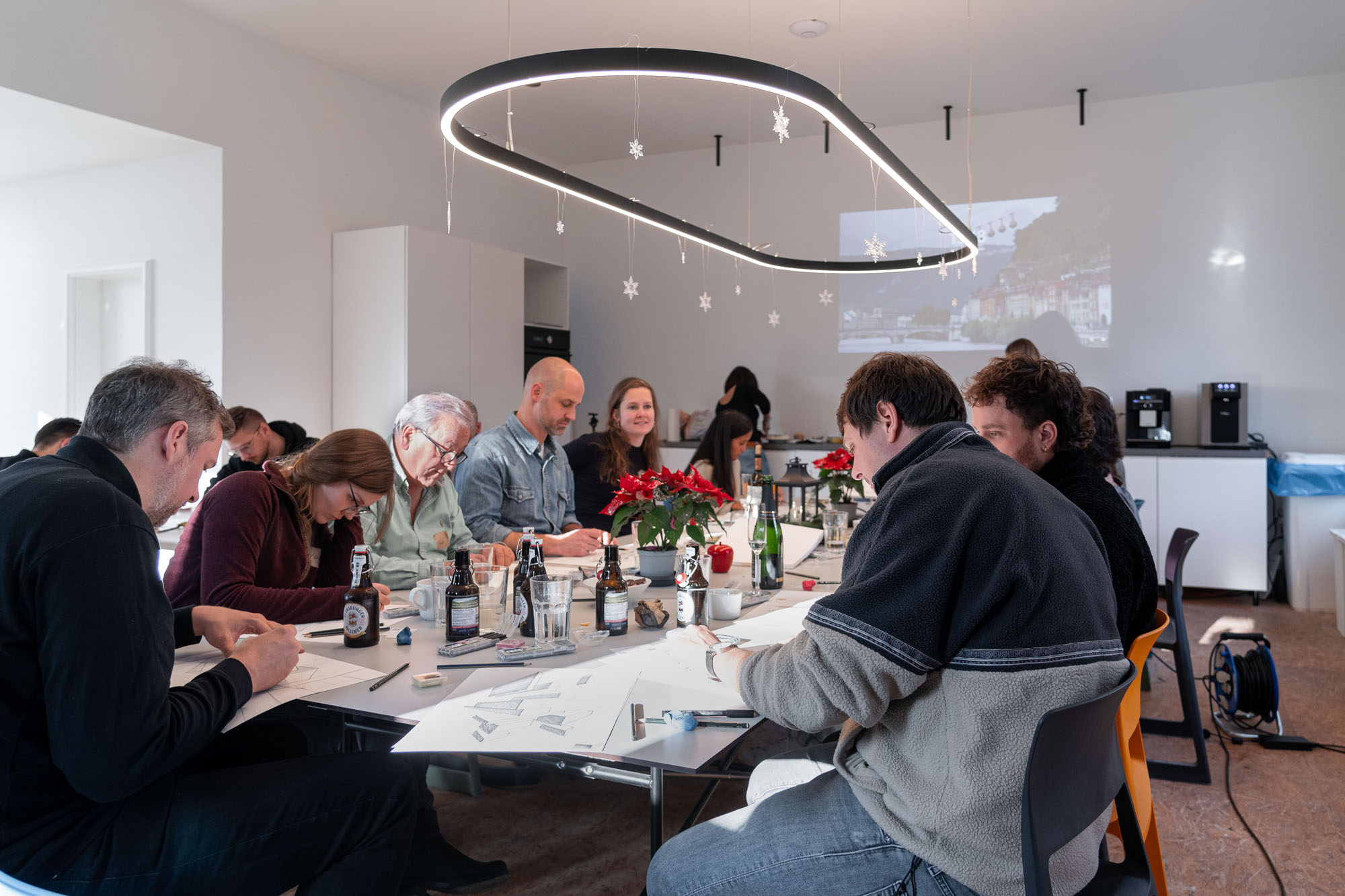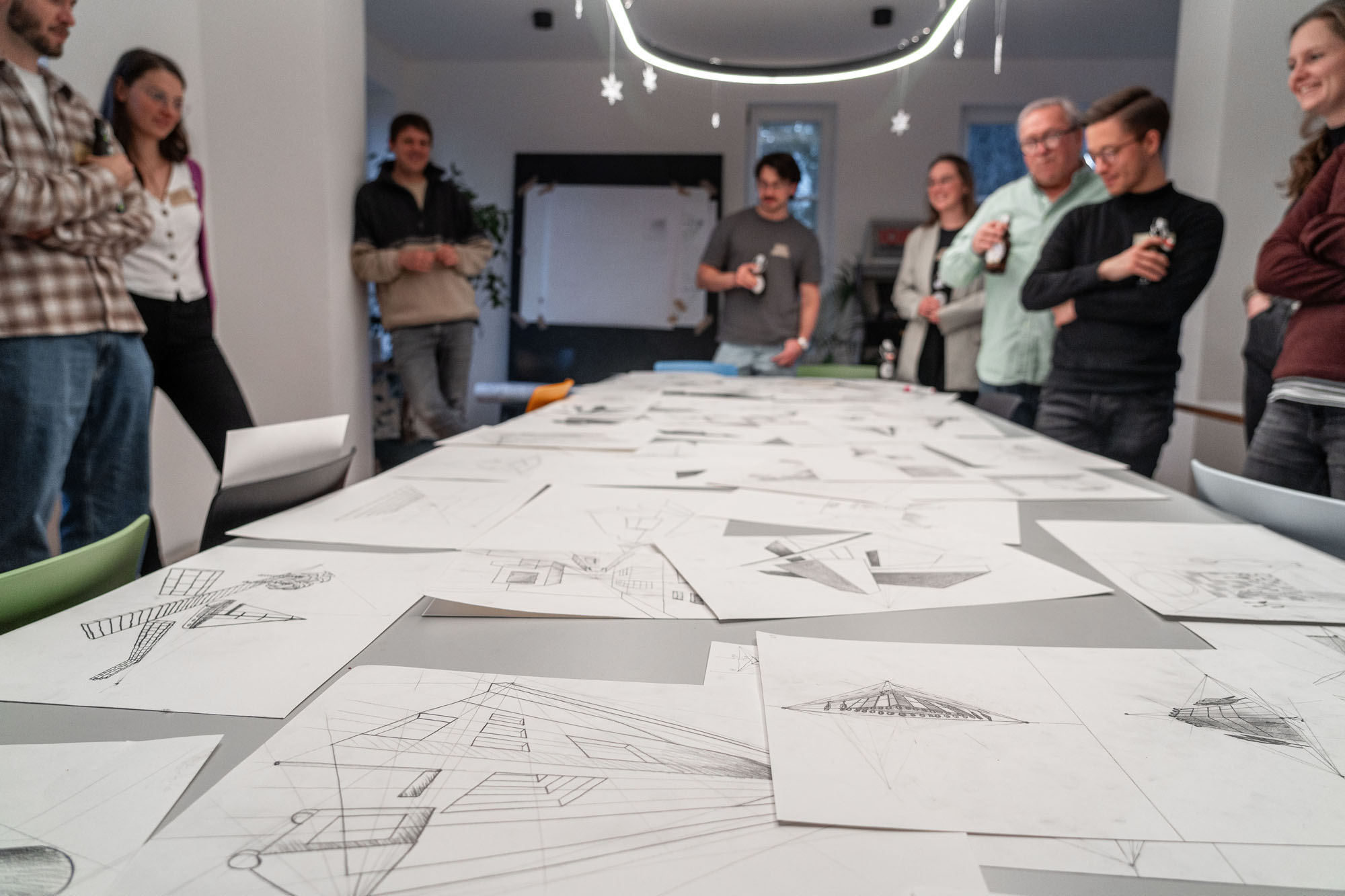 Wir haben Blei geleckt! In unserer voll digitalen Arbeitswelt (auf die wir an sich stolz sind), in der Stifte durch Mausklicks ersetzt werden, haben wir am vergangenen Freitag genau das Gegenteil getan: Back to the roots! Mit einem inspirierenden Workshop zur perspektivischen Konstruktion und Zeichnen im Team hat uns Svetlana Davina auf eine kreative Reise mitgenommen. Als Architektin und Künstlerin hat sie uns gezeigt, dass auch in der schnelllebigen Architekturwelt ein ruhiger Strich manchmal Wunder bewirkt – und so manch vergessene Talente in unserer Crew wieder zum Leben erweckt.
