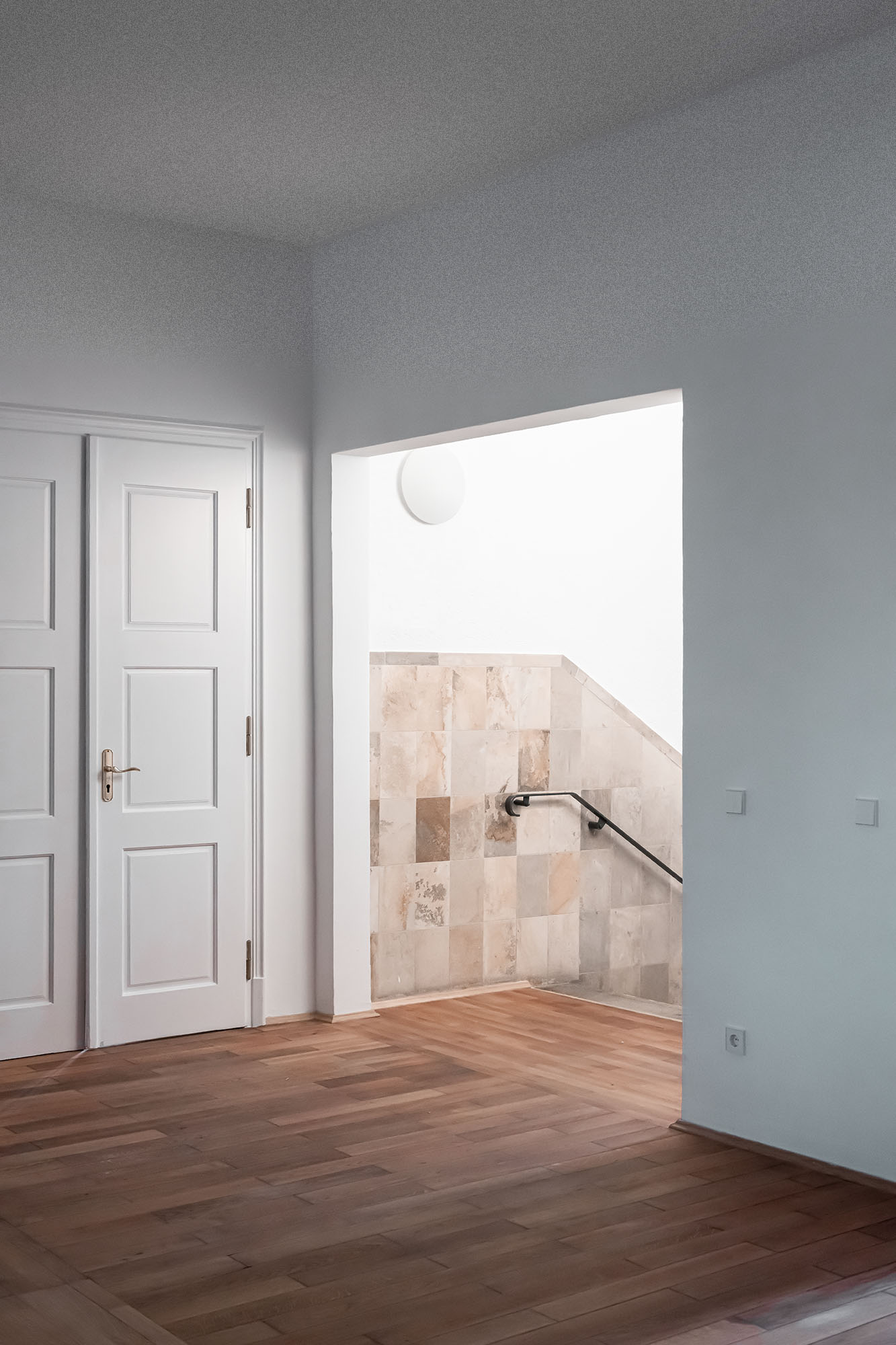 Der unter Denkmalschutz stehende JOHNNY-Hauptsitz, der vormals als Pfarr- und Gemeindehaus St. Konrad diente, ist nicht nur für uns ein historisches Kleinod. Sowohl aus ideellen als auch aus Gründen der Nachhaltigkeit war es ein großes Anliegen, den Bestand des Kaminzimmers zu erhalten und so weit wie möglich in die Neukonzeption des gesamten Gebäudes der JOHNNY-Büroräumlichkeiten zu integrieren.