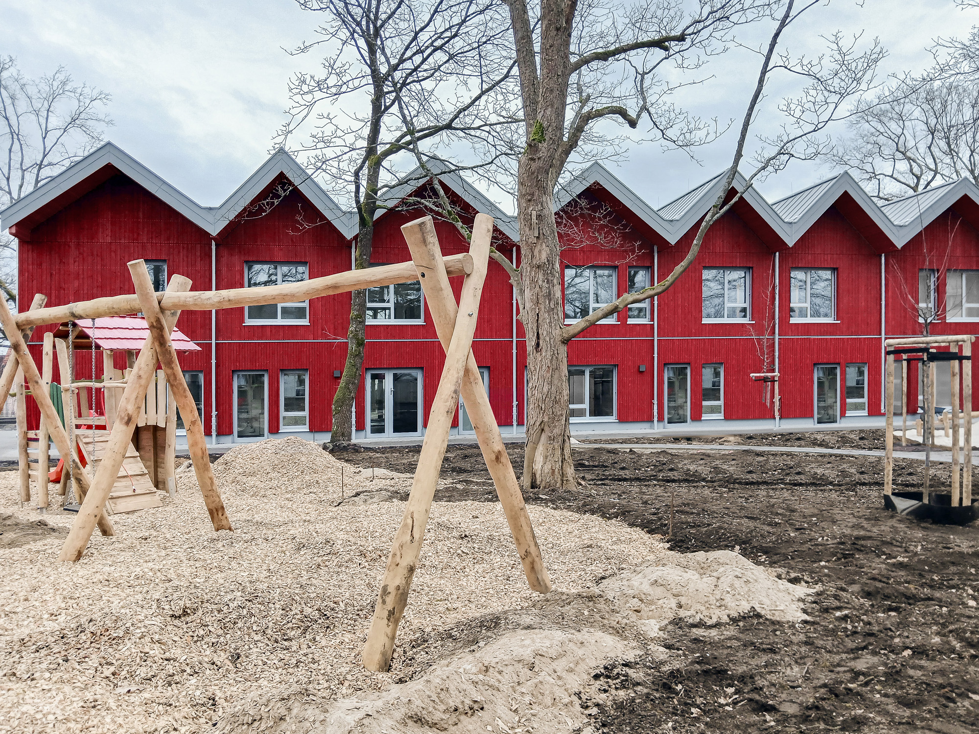In Munster entsteht eine viergruppinge KiTa in Holzbauweise. Kern des Projektes war neben der nachhaltigen Umsetzung, insbesondere auch eine beinahe autarke und klimaneutrale Haustechnik, der Umgang mit dem umfangreichen und beeindruckendem Baumbestand auf dem Grundstück. Gemeinsam mit AUDERE EQUITY konnten wir die Jury und die Stadt Munster im Investoren-Wettbewerb für unser Konzept überzeugen.