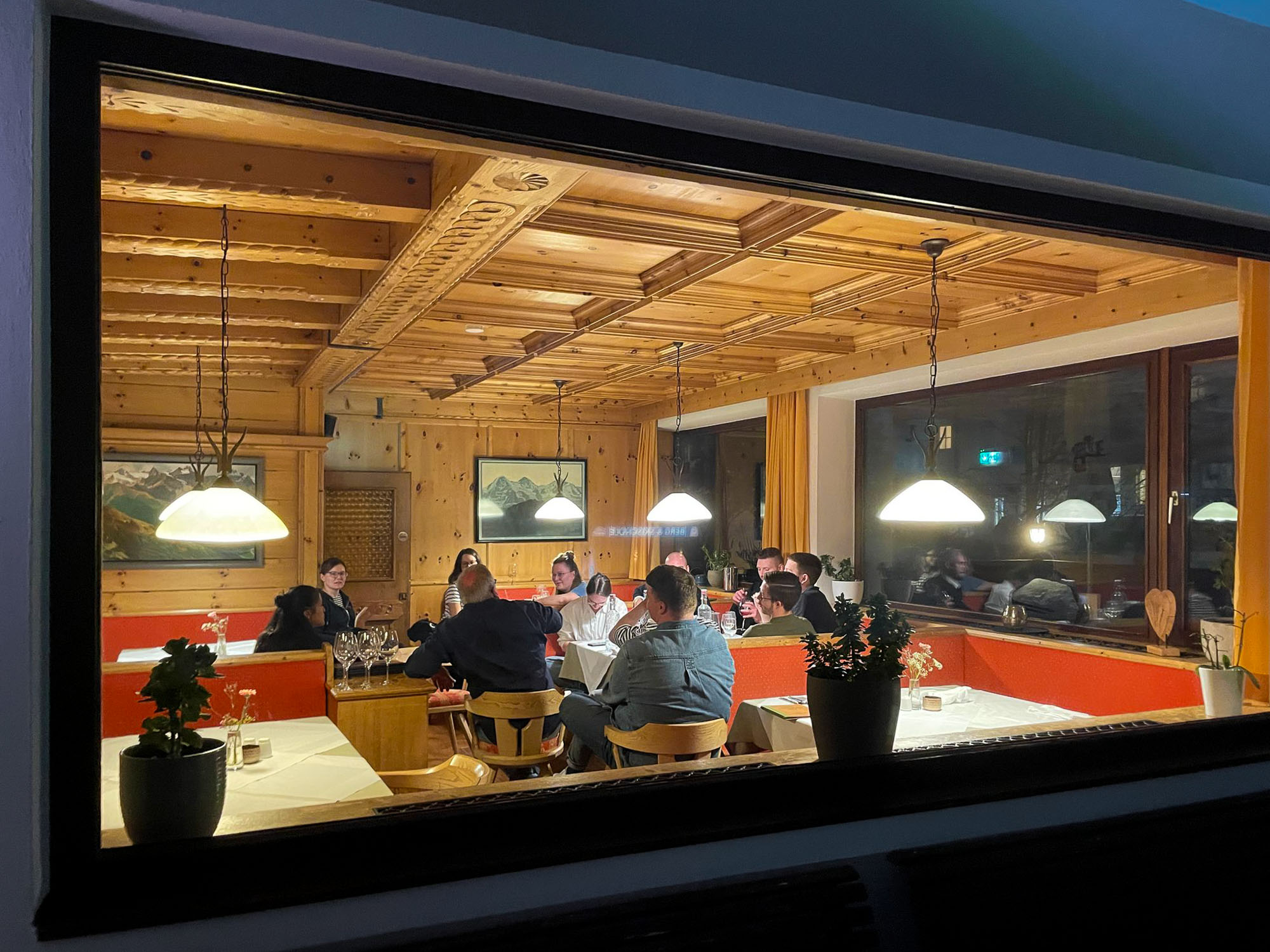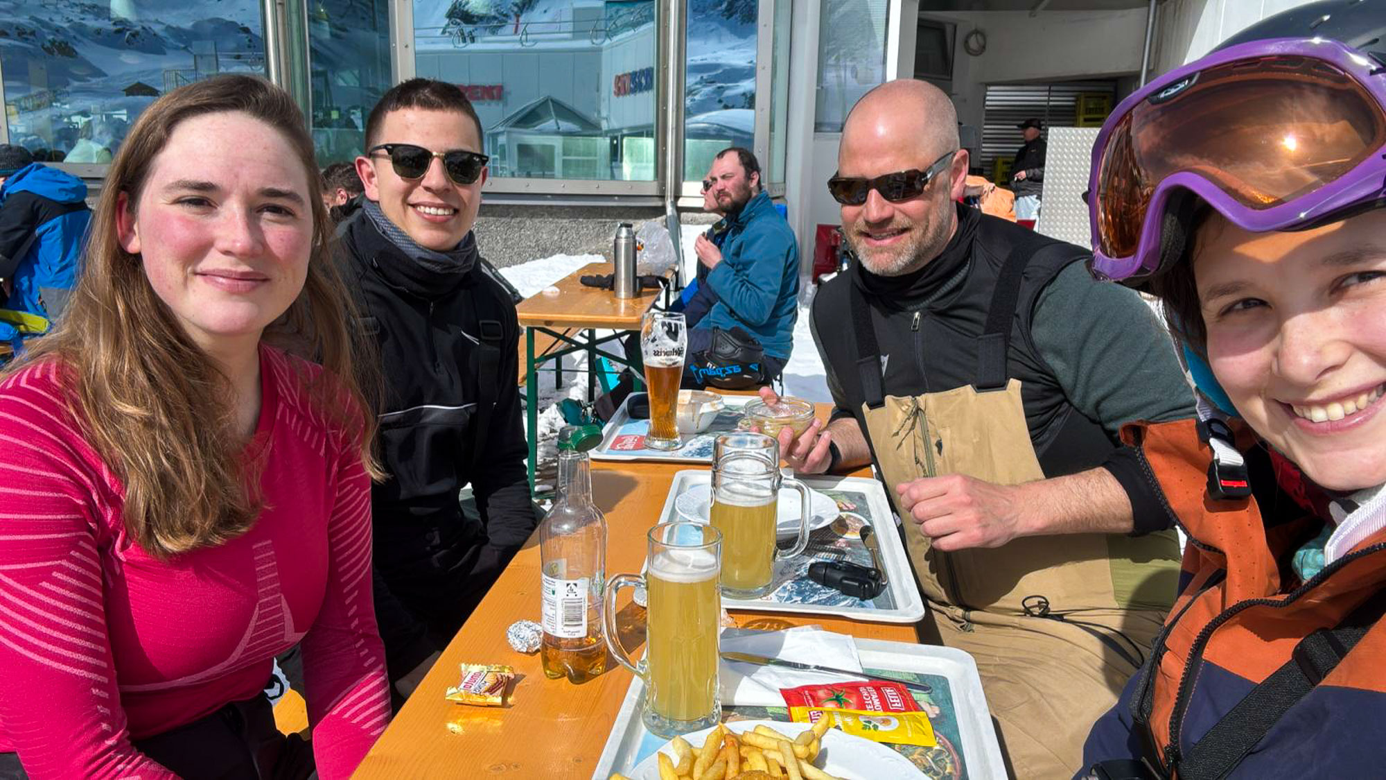 Pünktlich um 10 Uhr waren wir da und für alles bereit. Tagsüber zeigte sich Team Sport von seiner besten Seite: rasante Abfahrten, perfekt geschnittene Schwünge und eine Menge Muskelkater in Aussicht. Doch auch Team Spaß hat sich nicht lumpen lassen – Sonnenterrasse, Kaiserschmarrn und das eine oder andere Aperol-Debriefing standen hoch im Kurs.