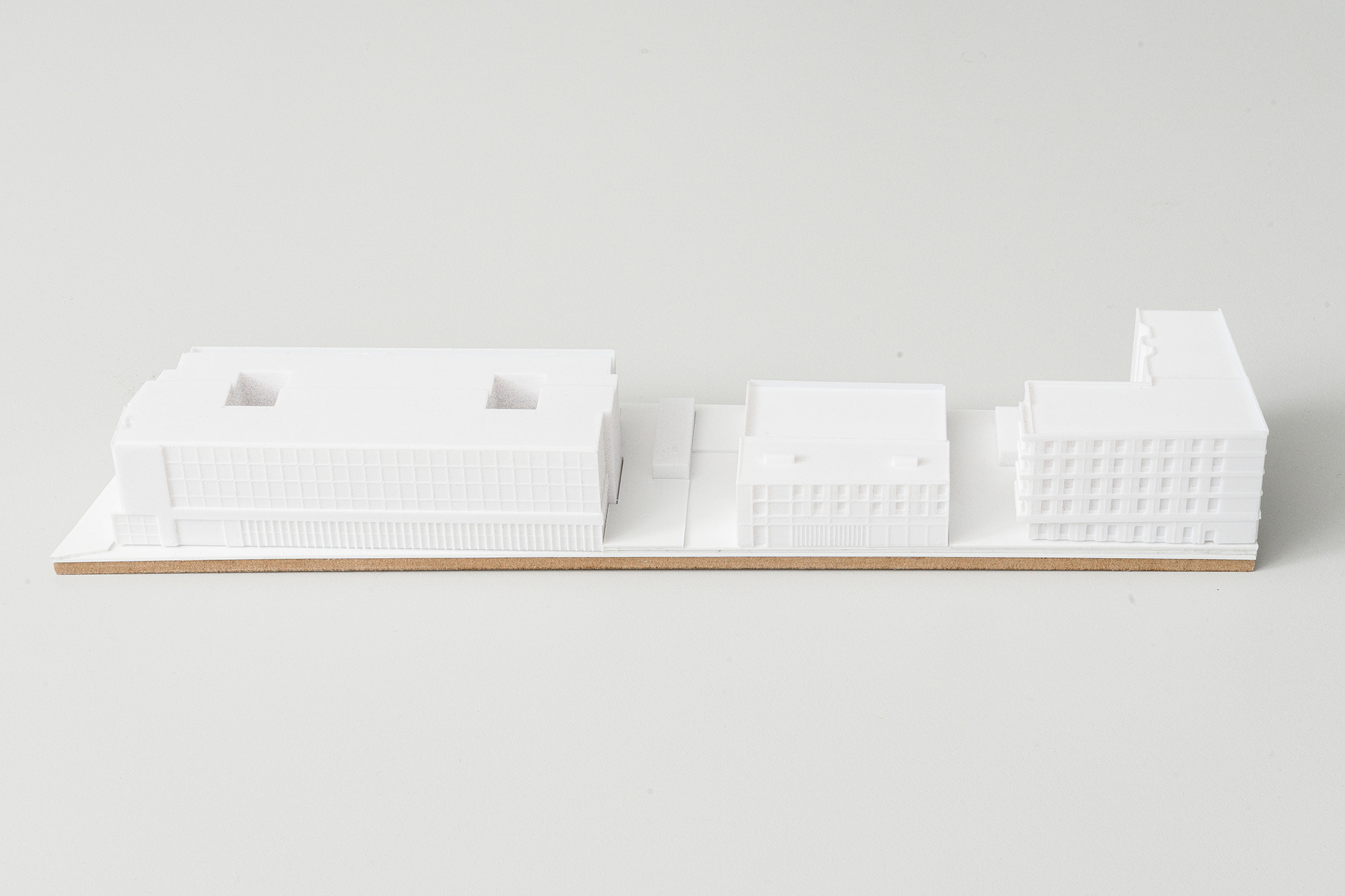 Herangehensweise und Städtebau – die Herausforderung des Entwurfes ist es, eine städtebauliche Lösung für die Positionierung von drei Nutzungseinheiten zu entwickeln, die keine naheliegenden Schnittstellen bieten und in Teilen sich im Nutzungsprofil sogar teilweise konterkarieren. Wir haben uns daher entschlossen, die Volumen zu trennen und ihnen eine gleichwertige städtebauliche Gewichtung innerhalb der typischen Berliner Strukturen zu ermöglichen. Das Parkhaus als dringliche erster, und dabei vielleicht mittelfristig temporärer Baustein, bildet den nördlichen Abschluss des Areals und bildet ein Gegenüber zu den großmaßstäblichen Volumen Bundesinnenministeriums.