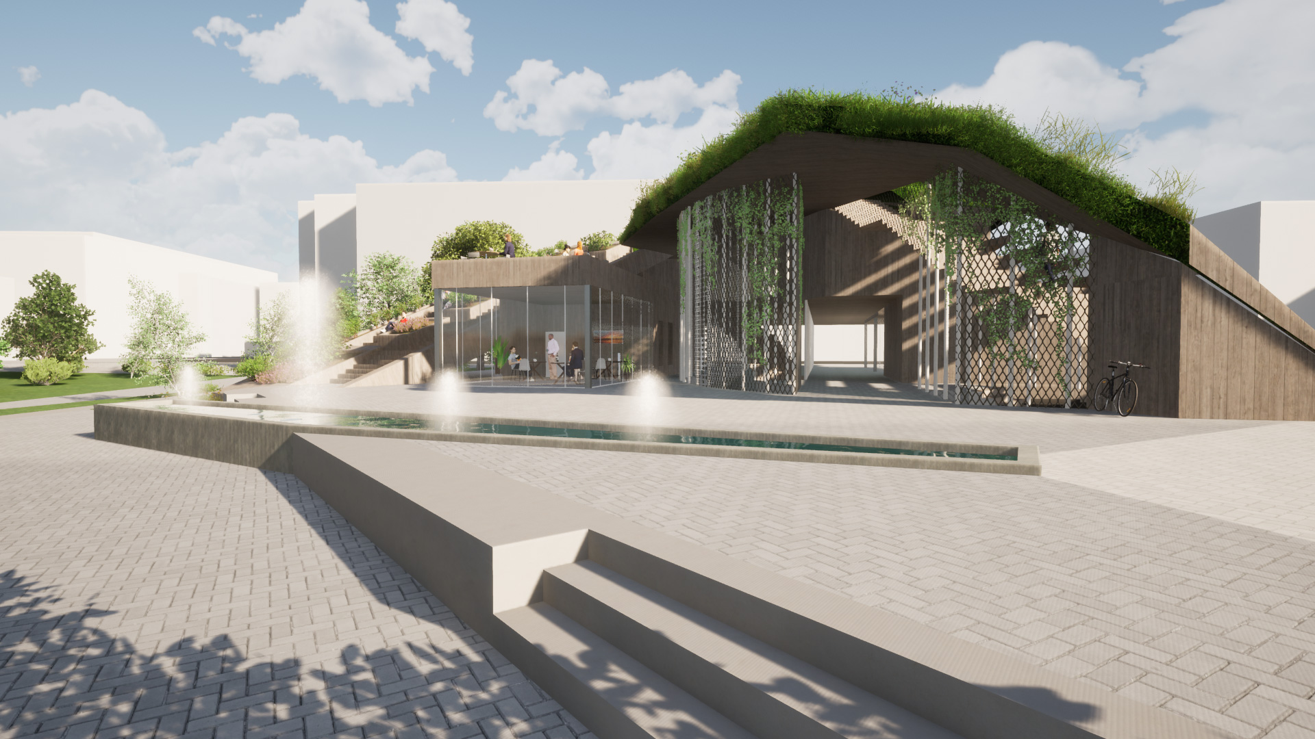 Die Heizung der Aufenthaltsflächen, speziell der Gastronomieflächen erfolgt über eine Wärmepumpe mit Anschluss an das Grundwassersystem. Mit Ausnahme der Spitzenlasten wird diese über die PV-Anlage betrieben. Die Funktionsflächen werden zweckorientiert nur minimal mit Heiztechnik ausgestattet, da von stehender bis bewegter Tätigkeit ausgegangen werden kann. Ziel ist es, mit den weiteren Planungstiefen ein Plus-Energiegebäude nachweisen zu können.