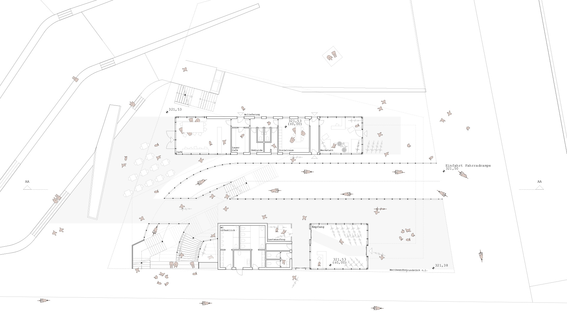 Die zukünftige Fahrradstation am Hauptbahnhof von Tübingen ist Funktionsbau, Landschaftsarchitektur, Infrastruktur, Gelenk, Landmarke und Stadtmöbel zugleich. Die Überlagerung dieser wichtigen und gleichwertigen Aufgaben mündet in eine zeichenhafte Architektur.