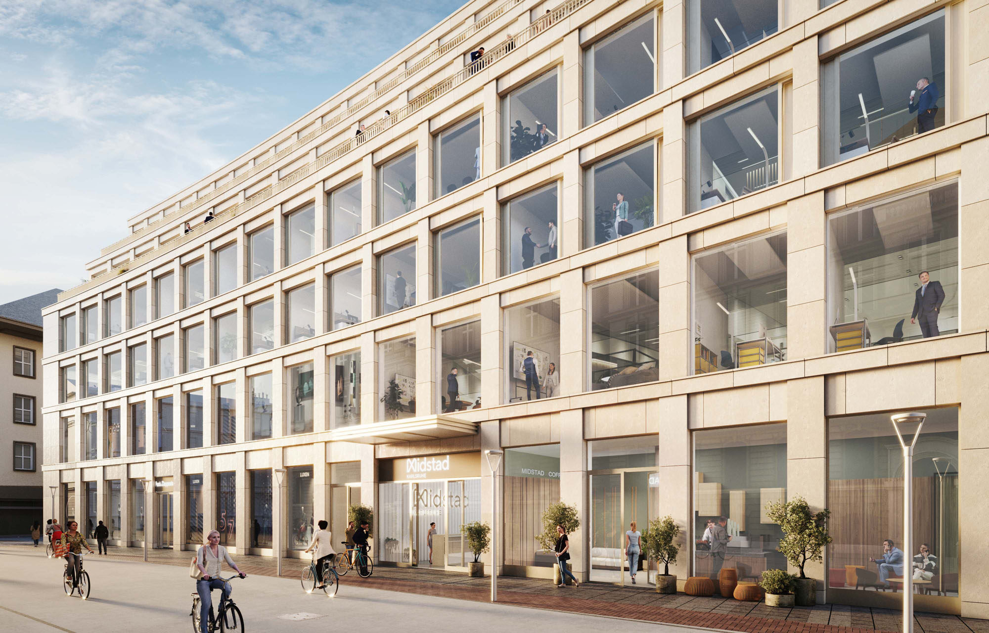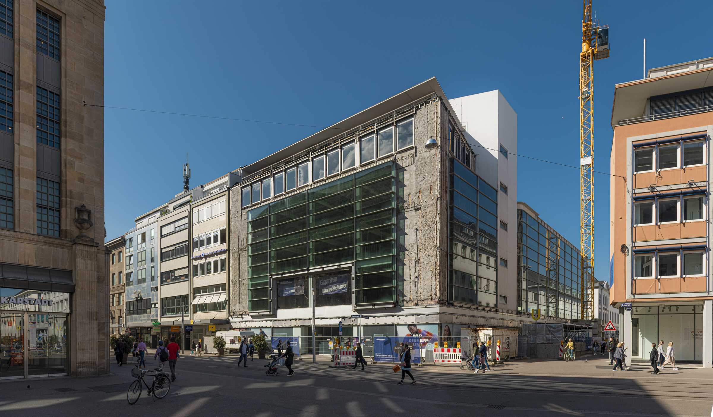 Im Innenstadtbereich von Karlsruhe wurde das P&C Gebäude bis vor Kurzem als Handelsimmobilie und Parkhaus genutzt. Die beiden Bestandsimmobilien waren schadstoffbelastet und baulich, konstruktiv sowie auch brandschutztechnisch nicht zu erhalten und mussten zurückgebaut werden. Die Naxos Grundbesitz aus Düsseldorf hat Kleihues + Kleihues Gesellschaft von Architekten mbH mit der Planung eines Neubaus für eine Handels- und Büronutzung beauftragt.